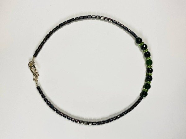 Collar gargantilla de hematite, ágata verde con donas de strass verde.