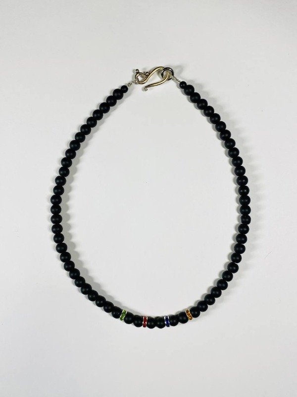 Collar gargantilla de ónix con donas de strass multicolor.